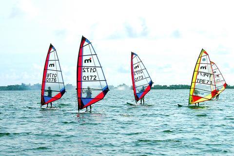 To take part in the Dapeng Bay Water Sports Festival, the most convenient way is to take a package trip organized by the Pintong County Government which is available through the EZ Travel Web site. A two-day trip from Taipei, including the Kenting Star Express Train (a special tourism train going directly to Pingtong), hotel, meals and tickets for three water sports are priced between NT$6,500 to NT$9,900. A one-day trip from Kaohsiung station is priced at just NT$1,500, including bus fare and meals. If you are driving to Dapeng Bay and don't require a package deal, you can still get discount coupons for water sports through the Internet, with NT$555 covering entrance and a number of activities.