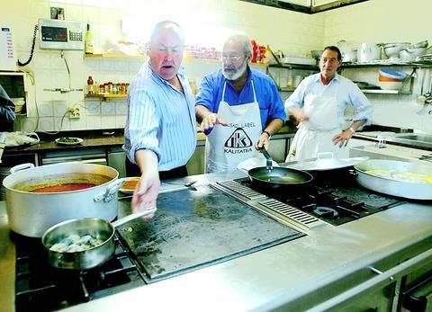 "My wife is sick of me coming here. She says I spend more time in the txoko than I do with her," Edu said, standing in the kitchen beside his two apron-wearing "assistants." "But she accepts it as another of her husband's passions."