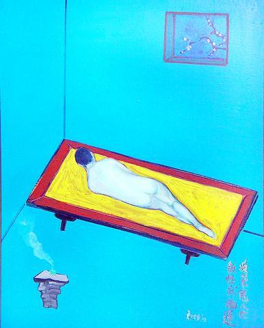 Extension of the Unusual combines two studies of popular Sung dynasty subjects -- a gentleman on a horse and a dancing lady. What prevents the Sung man and the woman from catching sight of each other is an expanse of meadow on top of today's Yangmingshan. A stray zebra also betrays the post-modernist era in which Chen made the work.