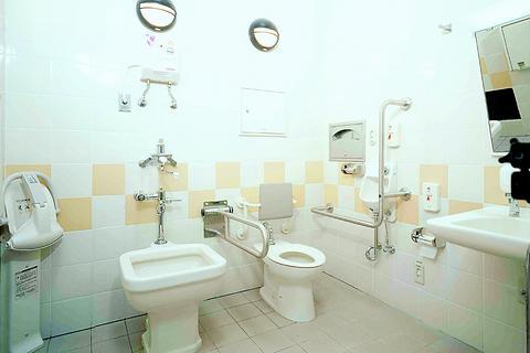 "Toilets for wheelchair users are equipped with a pair of bars which users can hold onto when they remove their pants and sit on the stool, but the bars are often set either too close or too far apart, so handicapped users have to make a lot of effort to undress," Wu said. In order to solve the problem, Wu installed bars which are 70cm apart in the 2.2m by 2.2m "multifunctional toilets" on Yangmingshan. The wash stand is within arm's reach from the stool on one side. "Wheelchair users often have constipation because they sit all the time, so they have to use an enema, or even their fingers. The wash stand have to be within easy reach so they can wash their hands right after the procedure," Wu explained.