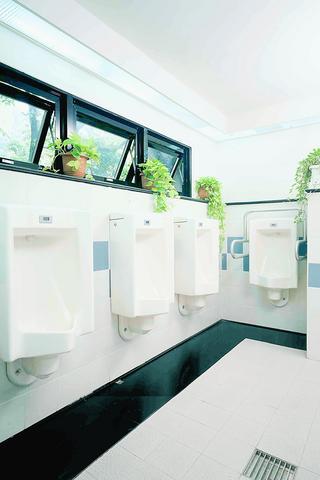 Wu, president of the Taiwan Toilet Association, made slight changes in regular toilets settings with his designs for three restroom buildings in Yangminshan Park to make maintenance easier. In the men's room, a row of windows is placed at eye level above the stools.
