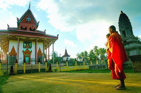 Looking at the ornate pagoda that dwarfs his tiny orphanage next door, he said, "They spent US$100,000 on that temple, money from the people."