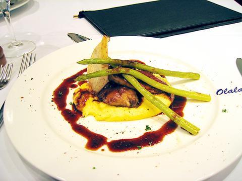 For appetizers, Olala offers diners a light yet satisfying salmon tartar (NT$310), tuna/beef carpaccio (NT$290), fresh oysters (market price), goose liver pate (NT$390) as well as chorizo, or grilled Spanish sausages (NT$210) and merguez, or Moroccan sausages (NT$250). The entree dishes, such as the highly recommended pan-fried fois gras served on a bed of polenta with sauteed vegetables topped off with a rich raspberry balsamic sauce (NT$690), proves that haute cuisine can satisfy the eagerest of diners. While too numerous to list in full, other Olala entrees worth sampling include veal (NT$720), duck magret (NT$610), cote de boeuf with sun dried tomatoes (NT$620) and fresh Canadian lobster either grilled or broiled (NT$1,200).