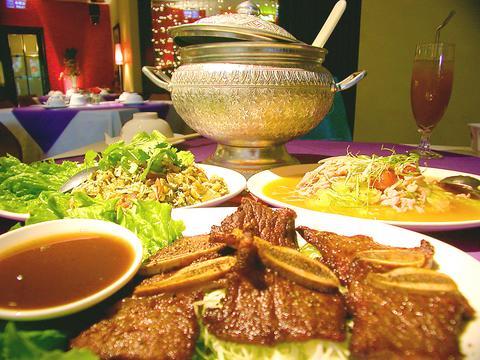 Part of the reason for this must be that the owners have made an extra effort to bring in authentic ingredients. Tea from Myanmar featured in the Burmese-style tea leaf salad (NT$200 and NT$280 for a bigger plate), which also contained beans and nuts from the same country. Kachin-style chili chicken and Shan-style bamboo chicken (both NT$280 or NT$420) are hard to find anywhere else in the city and provide what the owners called "special flavors from the East."