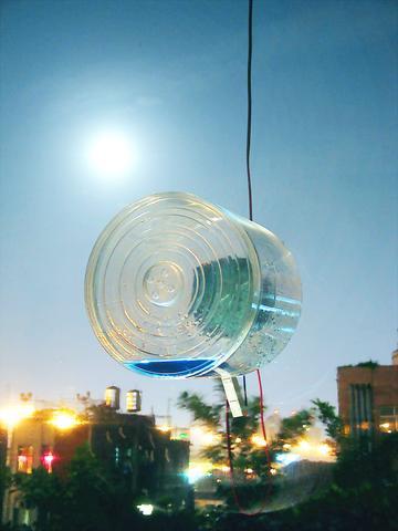 Along with his doorbell, other works include huge home-made woofers from which the random sounds of Taipei -- devoid of everything but the bass lines -- emanate, a thumb tack-filled tray, which when activated sets off a random chain of vibrations and sees thumb tacks jumping in all directions.