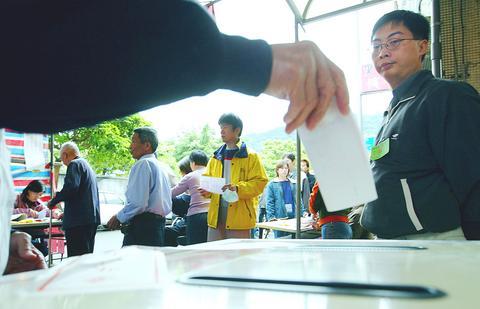 Under a dreary, dark sky and slight drizzle, voters of the Xinchang Borough in the Taipei satellite city of Hsichih yesterday morning were greeting neighbors and lining up to vote as they filed into the local Land God temple, which had been converted into a polling station. Some dutifully stopped to make three bows as they passed the altar before joining the short queue, though most made quick work of voting and left within minutes.