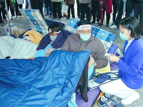 One of the core group of protesters whose commitment those paramedics were taking seriously was Chen Hsin-ju (陳信儒), who claimed on Thursday afternoon to have gone without food since April 2 and without water for the past two days.