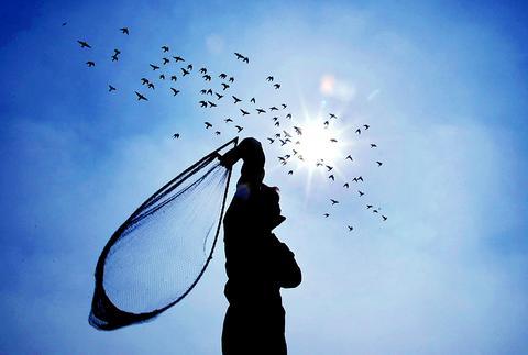 Much of a kabooter baz's time is spent choreographing elaborate airborne dances: sending pigeons into the air, urging them to fly away and then calling them back with a cry of ``ahhhh-ohhhhh!'' and a hand motion like the scattering of seeds. In seconds, birds that were little more than distant speckles in the sky reappear in a gentle flapping of wings.