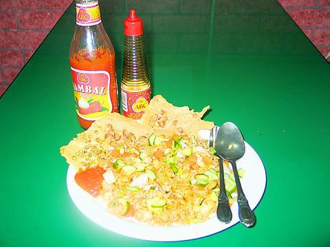 The menu, like the surroundings, is simple, with only 11 items to choose from, but the spices used are imported and the cooking is all done by an Indonesian chef. The food can be made spicy or mild depending on individual taste, and if it's not quite spicy enough, there are bottles of sambal hot sauce on every table.