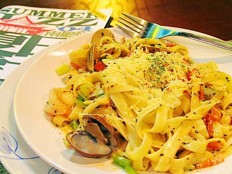But if you've only come for music or poetry, you're missing the pasta. Pescatore basilico (NT$200), seafood and basil herb in a creamy sauce, is al dente pasta piled with shrimp, clams and scallops. If the scallops aren't surprise enough, the spiced celery surely will be.