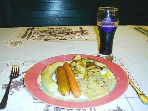 The gemischte wurst includes three types of sausage: veal, cheese and frankfurter. None of them is overly sweet. A healthy portion of homefries and imported sauerkraut -- which doesn't have that from-the-can-sour taste -- rounds off the meal.