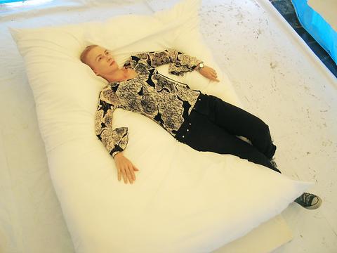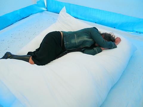 The exhibition can be seen in two parts: the visual, which includes a massive oversized pillow inside a sterile (almost clinical) white room; and the informative: supplying a wealth of information on how to cope with break-up and depression.