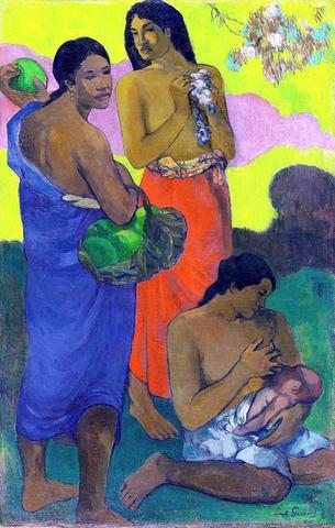 Maternite (II), from 1899, was painted about the time the artist's 17-year-old Polynesian mistress, Pahura, gave birth to their son.