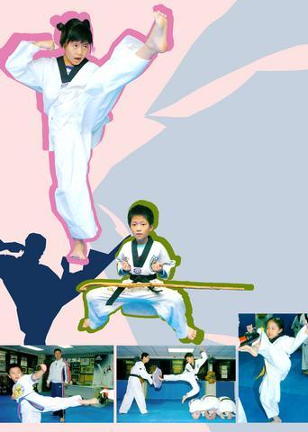 Ten-year-old Lee Mu-fan (李慕藩) has been studying for a year now and is a red-black belt. "I like to spin and kick because it's easy," he said. "Also, learning taekwondo helps me with my computer game techniques."