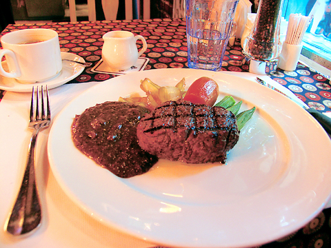 I understood what she meant about efficiency after I'd ordered a filet mignon set meal. Each course came promptly after finishing the previous item and was freshly prepared. The exception was the French onion soup, which seemed to have withered under a heat lamp. The filet itself, though, was excellent. It came with steamed okra and a delicious caramelized sweet potato that could have passed as dessert.