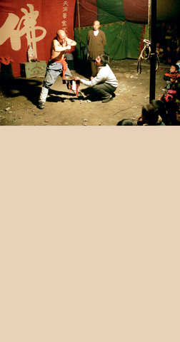 The circus had come to town, in the form of a dirty pink bus carrying about 20 men claiming to be disciples of China's most revered kung fu traditions. But this would not be a fighting exhibition. The men promised to eat metal balls, sleep on beds of sharpened blades and perform other acts of physical wonder.
