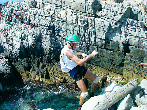 At nine in the morning Sunday the sun had already been baking the white cliffs of Taiwan's northeast coast for hours. Standing at the edge of a 15m precipice overlooking Longdong's roiling sea, Lin Siang (