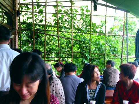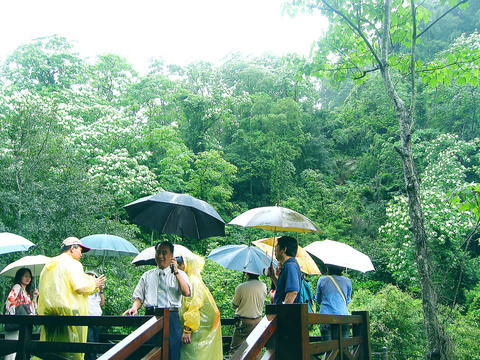 What remains are the forests of tung and the lovely flowers they produce in May, which are now, in their turn, being exploited as a tourism resource. Having created carpets of white flowers along the walking train at Lion's Head Mountain that float gently down the stream beneath the teahouse, it has to be admitted, that -- whatever their origin as an ultimately unsuccessful fraud -- as a backdrop to a day idling away in the hills of Hsinchu, the "happy accident" of their presence can only be applauded.