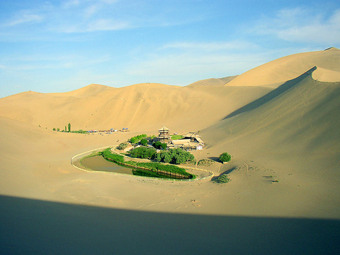 The nearby Mogao Caves, painted with murals dating to the fourth century, were built by the monks who helped bring Buddhism from India. The caves have been designated as a World Heritage Site by the UN.