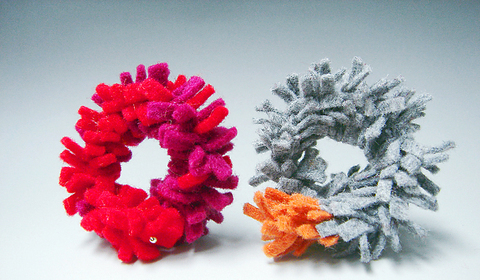 The functional selection highlights rings designed to be useful and stylish. Lin Li-chen (林俐貞) produces a variety of different size and color egg-shaped rings made from durable ceramic that won't crack or break easily. The ring's rounded shape resembles a hollowed eggshell allowing the wearer to use it as a massage tool.