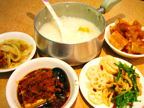 I found that, in general, the sweeter dishes went best with the congee, especially the deliciously crunchy lotus root and the tender leeks. If your stomach is up for it at that time of night, there are many other tempting dishes to try: stinky tofu, kung pao chicken, and several hearty stews. A selection of greens can be stir-fried or boiled to order.