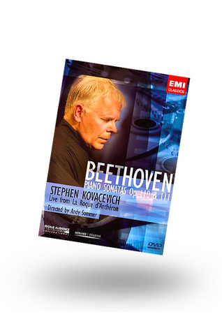 Utterly different is the somber new DVD of Stephen Kovacevich playing Beethoven's two last piano sonatas, together with some short encore pieces by Beethoven and Schubert. You only have to consider the music to know pretty much what to expect. Beethoven's last five piano sonatas are generally considered some of the most profound piano music ever written -- intellectual, ethereal, highly-wrought, both plumbing the depths and scaling the heights. The "Arietta" of Opus 111, for example, has been described as occupying "remote spiritual regions," after which "celestial utterances" nothing more could possibly be said. (The sonata does indeed stop here, without the conventional scherzo or finale).