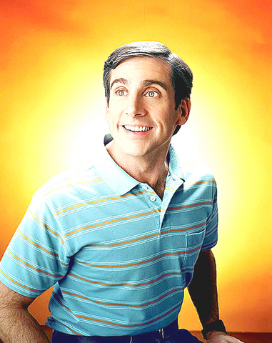 What does a 40-year-old male virgin look like when he is not living in his parents' basement, adrift on a cloud of bong smoke? In the case of Andy Stitzer, the title character played by Steve Carell in the charmingly bent comedy The 40-Year-Old Virgin, he wears the dreamy look of the undefiled familiar from Renaissance paintings of saints and martyrs, and from 1950s suburban pastorals like Leave It to Beaver. As captured in the poster for the film, which shows Andy gazing rapturously into the distance, it is a look that conveys an almost incomprehensible happiness -- as if the Beav had grown up and achieved beatitude, rather than a house, a wife and 2.5 kids.