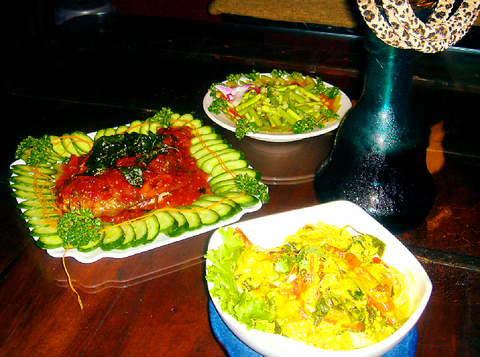The mix-and-match decoration reflects the menu, which features dishes from Singapore, Thailand, Malaysia and Indonesia. This is a fusion restaurant so many of the recipes have been augmented. The shrimp green curry was served with a thicker sauce than the Thai staple -- and the heat had been turned down considerably. Other Thai options include green papaya salad and tom yum soup. The Thai-style raw shrimp comes highly recommended. "Like angels dancing on my tongue," commented one diner.