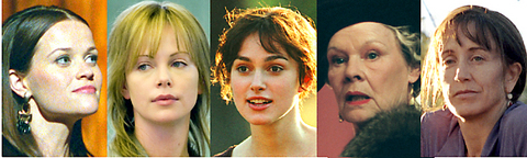 The two have dominated Hollywood's awards season over their fellow nominees, Judi Dench in Mrs. Henderson Presents, Keira Knightley in Pride and Prejudice and Charlize Theron in North Country.