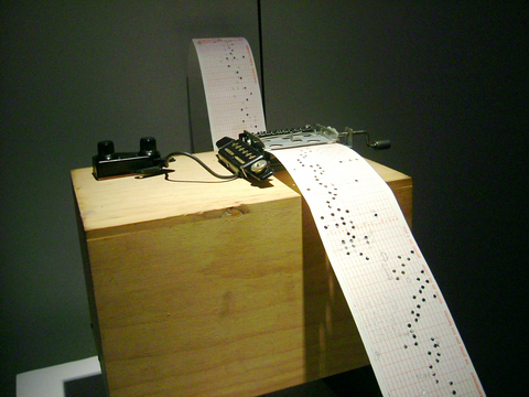 Lin ran his sketches through the fax machine which read the images creating sound signals which he then recorded on tape and transferred again into the fax machine. Here Lin combined sound and image in a loop format.
