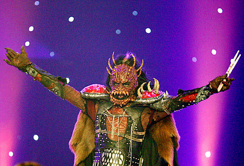 The cartoon metalheads, who sport latex monster masks and spark-spewing instruments and sing about "the Arockalypse," fought off a strong challenge from Russian heartthrob Dima Bilan to take the 51st annual music prize.