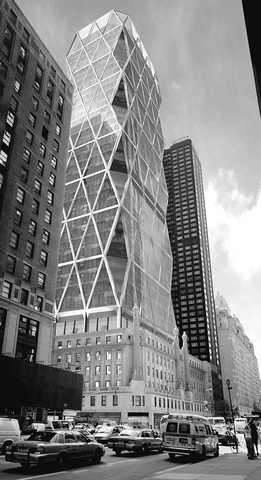 In setting out to design the Hearst Tower, Foster said, he thought about "satis-fying the senses, the spirit of the place, the joy of an interplay of light or shadow or texture or color."