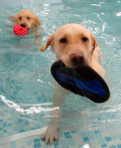 In the back are a recreation area for larger dogs and a small swimming pool. Chu Ya-wen (朱雅雯) takes her two-year-old Labrador retriever Cindy here once every two weeks. “I let her swim for 50 minutes and she's still not tired,” Chu said as Cindy did laps and chomped at the waves.
