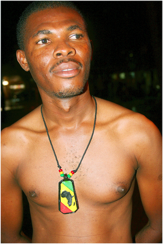There are also dried-wood African pendants, bracelets constructed out of colored electrical wire and big round nteh seeds formed into necklaces.