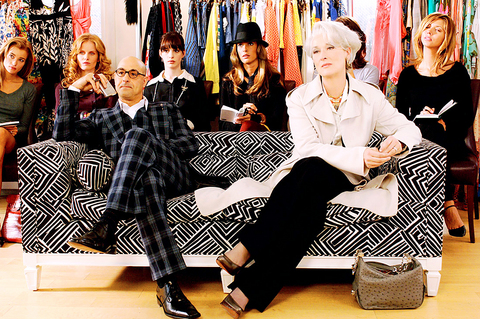 In this version the vicarious thrill is not payback but rather conspicuous consumption: all those lovingly photographed outfits and accessories, those warehouses' worth of Chanel and Jimmy Choo, those skinny women decked out (by the tirelessly inventive Patricia Field) in expensive finery. The Devil Wears Prada does exactly what the real-life counterparts of Runway magazine do every month, which is to deliver the most sumptuous goods imaginable — or fantasy images of them, in any case — to the eager eyes of the masses.