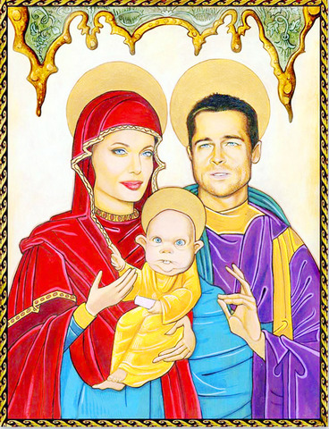 When word arrived that Brad Pitt and Angelina Jolie were expecting a child — news that set off an inescapable frenzy of anticipation for what would certainly be the most beautiful child ever — didn't you have a sneaking thought that some recessive ugly genes could produce a baby who was “a little goofy looking,” as the artist known as 14 put it on her Web site? Sacrilege in the hype-driven world of movie-star news, that idea was the inspiration for great satire on 14's Gallery of the Absurd, the best of many sites that skewer celebrity culture. She created an image of Brangelina and Child as the Holy Family, turning them into icons in the original Byzantine sense, complete with halos but with a child who looks a bit too much like Gollum from Lord of the Rings.