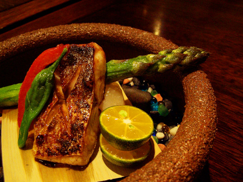 Presentation receives equal attention. The grilled Taiwanese carp (鯃魚), cooked with a type of teriyaki that has none of the smothering sweetness of the standard stuff, is served on a small sheet of juniper wood, which itself rests on a bed of hot pebbles that both keep the fish warm and cause the mild flavor of the wood to seep upward.