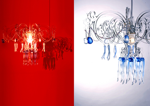 The delicate pendant lamps by designer and college instructor Lin Hsiao-ying (林曉瑛) serve as a reminder of the former Barbie doll factories of Taishan Township, Taipei County (台北縣泰山鄉) and juxtapose the fantasies of young girls with the fate of the now-closed factories.