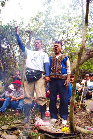 The assembled group has come to participate in an activity that is becoming increasingly common among Taiwan's indigenous population: searching for their roots (尋根). The tribe will spend the morning hiking up the mountain and meeting up with another group of Aboriginals from the same tribe, who are hiking in from a different direction. Together they will perform a ritual that is symbolically meant to recover the land. It will also provide the tribe's elders an opportunity to impart some wisdom to members of the younger generation.