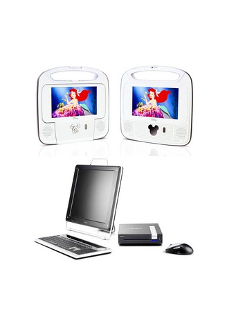 The kit, available from www.disneyshopping.com, includes two power supplies for either car or house power, two pairs of headphones and an extra video cable that could be plugged into a TV at home. Missing are rechargeable batteries, so when your car's ignition turns off at a rest area, so does your movie.