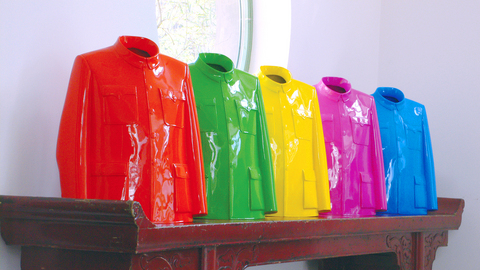 Chinese artist Sui Jian-guo's (隋建國) sculpture titled Rainbow Jacket blends Sun Yat-sen's (孫中山) drab tunic suit — often misinterpreted as those worn by Mao Tse-tung (毛澤東) — with the psychedelic cover art of the Beatles' Sergeant Pepper album, and brings to light the ways in which China is both steeped in the past and opening to Western influences.