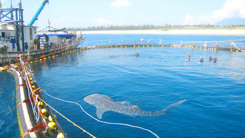 In Taiwanese waters, whale sharks are usually caught in position nets, which are designed to catch other large fish, such as bluefin tuna and mackerel. These nets funnel the fish into ever-smaller nets and cause minimal harm, making fish captured this way attractive candidates for an aquarium.