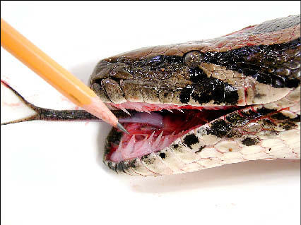 In frequent slide presentations to community groups, he pulls no punches, describing how the snakes seize prey with small sharp teeth and suffocate it with muscular coils. There are several recorded deaths of pet owners in the US strangled or suffocated by pythons.
