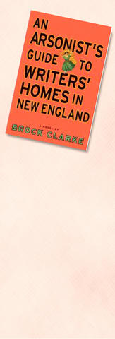 An Arsonist's Guide to Writers' Homes in New England is as cheerfully oddball as its title. Its cover art includes a tiny cartoon sketch of a green-frocked literary lioness garlanded in flames, and that captures the irreverence of the author, Brock Clarke's, enterprise. Although it is his fourth book, it feels like the bright debut of an ingeniously arch humorist, one whose hallmark is a calm approach to insanely improbable behavior.