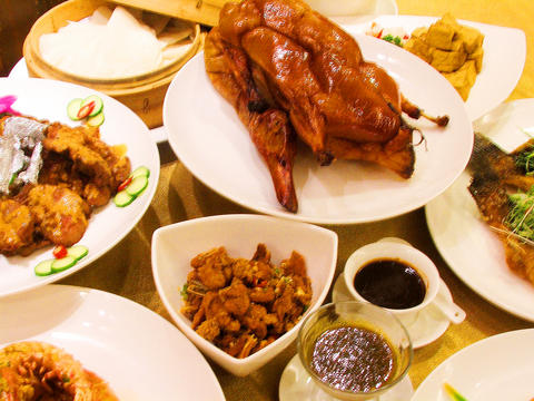 Among the dishes served were Cantonese-style roast duck (廣東燒鴨, NT$900), pan-fried lamb chops with fermented bean curd (乳香焗羊扒, NT$450) and Ng's own special creation, sauteed shrimp balls with XO sauce (XO醬蝦球, NT$380). The second and third dishes are featured in Canton's NT$8,000 table d'hote menu, a 12-course meal for 10 people that comes with juice and two bottles of red wine. Among the other courses are braised shark's fin soup with mixed vegetables (紅燒三絲翅), steamed grouper with soy sauce (清蒸石斑魚) and stewed chicken with ginseng soup (鮮人蔘燉雞). A similar menu with a few slightly pricier variations costs NT$10,800.