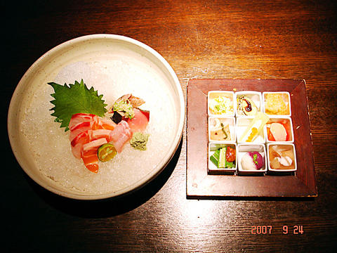 Also highly recommended is the appetizer dish cubic appetizer (九宮前菜), which consists of nine ceramic cubes containing different appetizers chosen by the chef from the day's freshest ingredients.