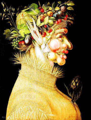 Arcimboldo's subject was the instability of life, its changeability in a widening world. His purpose was to inspire a fresh but not always entirely comforting sense of possibility and wonderment. Mercantile conquests by 16th-century European powers, France included, uncovered new continents, from which an ear of corn, exotic and rare, could serve not just as a visual pun for a human ear but also as a political symbol of faraway places, economies, peoples - of nature itself - brought to heel.