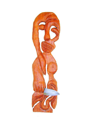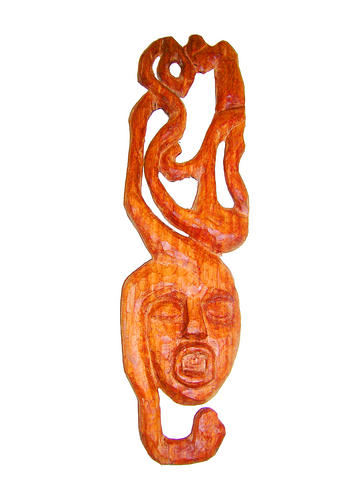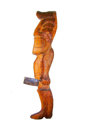 Barton is, rather unexpectedly, also a wood-carver. He carves cedar, camphor, soapstone and alabaster. He's influenced by the traditional art of Canada's West Coast, he says. He scarred his hand carving one piece. He doesn't try to sell his work, but instead leaves them "standing around the place."