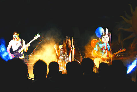On Wednesday night at The Queens, a plush, LED-festooned club on the 12th floor of the Core Pacific (京華城) mall that hosts live bands every night of the week, a group of more than 40 people gathered for what looked like a corporate party. Most of them were in their late thirties or older, and the men were wearing jackets and ties - not the kind of audience you'd expect to turn up for a show by Rabbit Is Rich (兔子很有錢), a raw, New York-style garage-rock band influenced by The Strokes, The Hives and The Yeah Yeah Yeahs. But several songs into the set, as the group's petite singer Andrea Huang (黃盈誼) screeched, yelped and strutted around in a black mini-dress with a glittering silver-studded belt, nearly everyone was on the dance floor, bobbing like pogo sticks and flailing their hands in the air as she sang, "I'm gonna, gonna, gonnna kick your ass. I'm gonna, gonna, gonnna kick your ass."
