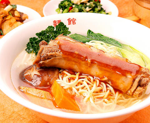 The restaurant's philosophy can be summed up in its house specialty, noodles with pork spare rib (招牌子排麵, NT$150), which is pretty much exactly what its name suggests - a bowl of egg noodles in broth with blanched vegetables and a pork spare rib served on the side. Though this sounds like something you might be able to pick up at a street-side stall for little more than half the price, what is presented is quite distinctive. The first thing to notice is the broth: light without being insipid, it has a natural sweetness that owes nothing to MSG or other flavor enhancers. The vegetables are blanched very lightly and retain good color and flavor. Then there is the rib, which is cooked like dongpo pork (東坡肉), a famous dish of fatty pork stewed in a rich soy-based sauce. "We chose to use the rib because it is not fatty," said head chef Hsieh Chang-chou (謝長洲), who developed Mian Guan's menu. Hsieh said that while the menu looks simple, it is built around his own philosophy of Chinese medicine, nutrition and healthy living, which he has developed over 20 years as a chef in various five star hotels.